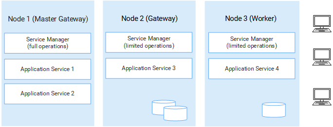 The following image shows a high-level architecture of a domain on multiple nodes: