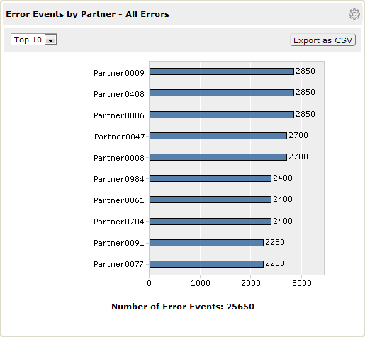 Top 10 / Top 20 | Number of partners for which to display the number of error events for the selected time frame. |