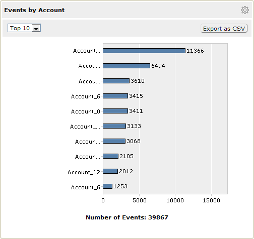 Account Name | Names of the accounts with the highest number of events for the selected time frame. Appears on the Y-axis of the panel. |