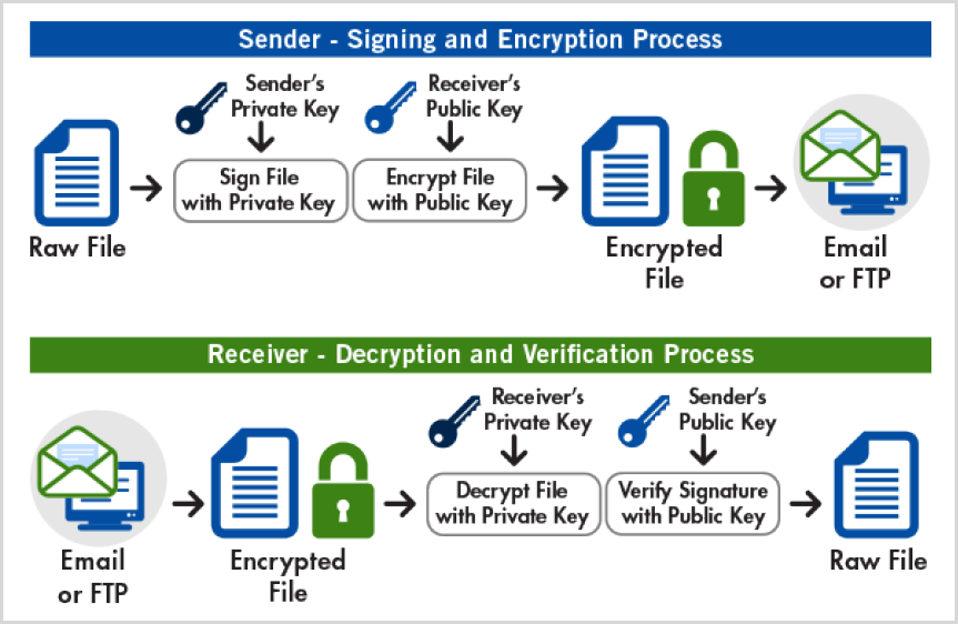 A trading partner may require that you additionally "sign" your files with your Private Key, which will embed a digital signature into those files. The trading partner will then use your Public Key to authenticate the files after they are received. Digital Signatures allows the trading partner to ensure that you are the true originator of the files.