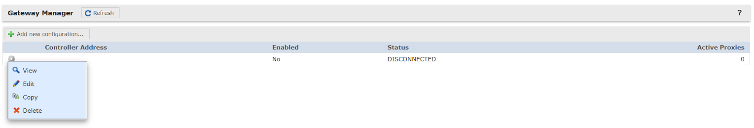 • Copy a Gateway by clicking the icon. For more information, see Copy.