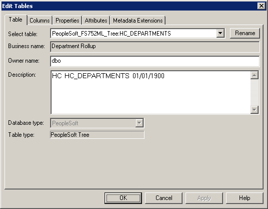 | Additional identifier used by some versions of PeopleSoft to identify winter trees. The field appears on the Attributes tab of the source definition when opened in the Mapping Designer.