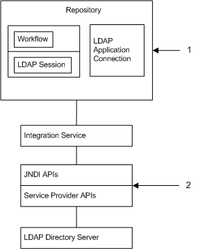 The PowerCenter Integration Service connects to the LDAP directory server using the JNDI APIs to read and write data.