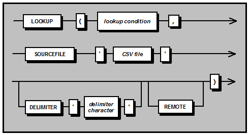 While the Lookup predicate is capable of processing a typical CSV file, it is flexible enough to also handle nonstandard CSV files or non-CSV files. As mentioned above, the DELIMITER parameter in the Lookup syntax allows the specification of any other single character as the value delimiter in the file. For example, the following CSV rows use the default comma, pound symbol (