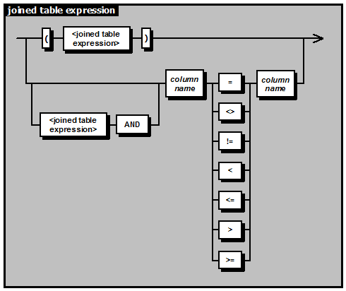 A joined table expression can optionally be enclosed by parentheses. The use of parentheses does not affect the order of processing in this case, since only the AND operator can be used to combine join predicates.