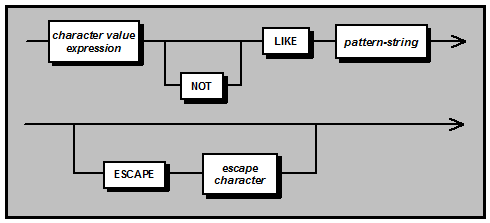 The following image shows the syntax for a LIKE (pattern-match) predicate: