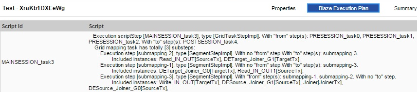 Administratorツールで、Blazeエンジンの実行プランがスクリプトとして表示されます。