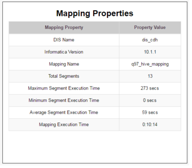 マッピングプロパティテーブルは次の情報を表示します。