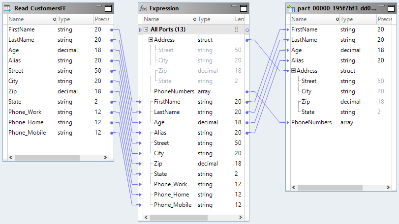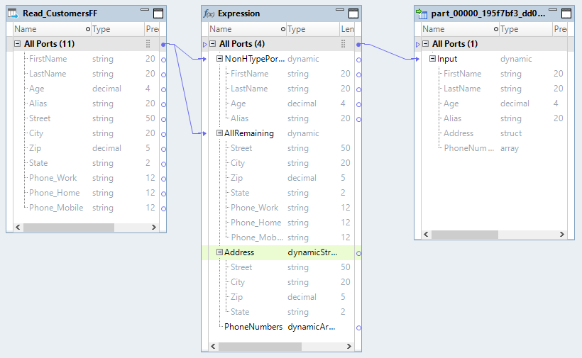 次の図に、最適化されたマッピングを示します。この最適化されたマッピングでは、生成されたポートが静的ポートに変換され、動的複合ポートが複合ポートに変換され、ポートリンクが解決されます。