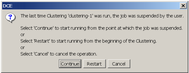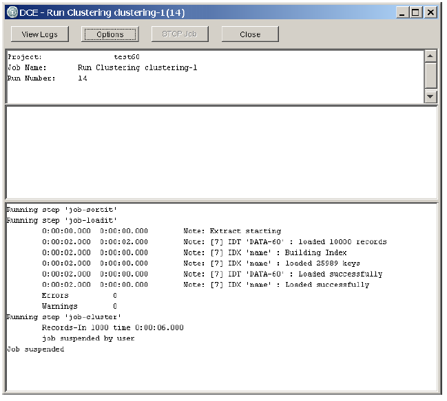 Shortly the Clustering process enters the wait state, which is indicated by the "Job suspended" message in the progress window.