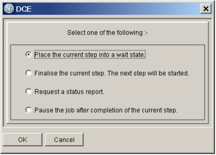 The job can be interrupted manually and placed into a "" by using the relevant features available in the DCE Console window: