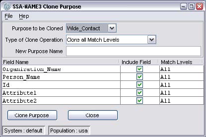 Having chosen the Clone Purpose function from the dialog described in the section Purpose, the following dialog will be displayed: