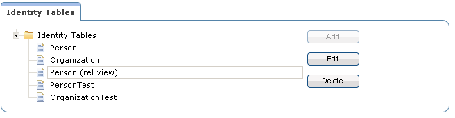 Add | Brings up Identity Table configuration dialog where all IDT-related configuration options are available. Refer to Configuring Identity Tables section for more details. |