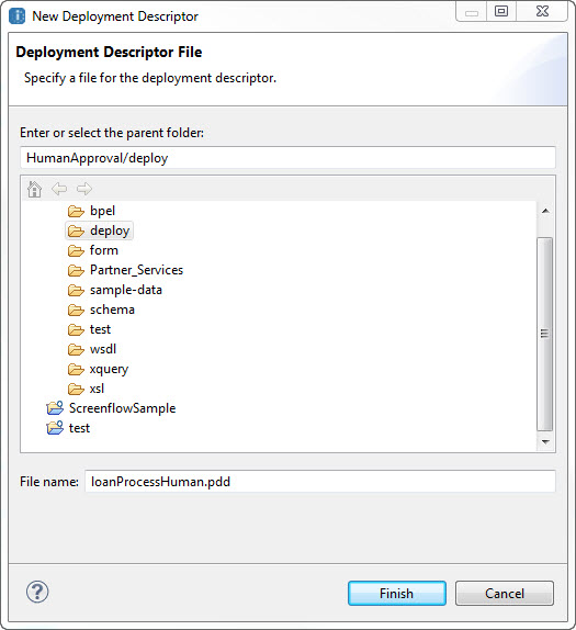 In this section, you'll prepare the process for deployment by creating the Process Deployment Descriptor (