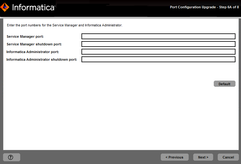 | 节点中的服务管理器使用的端口号。客户端应用程序和 Informatica 命令行程序使用此端口与域中的服务进行通信。